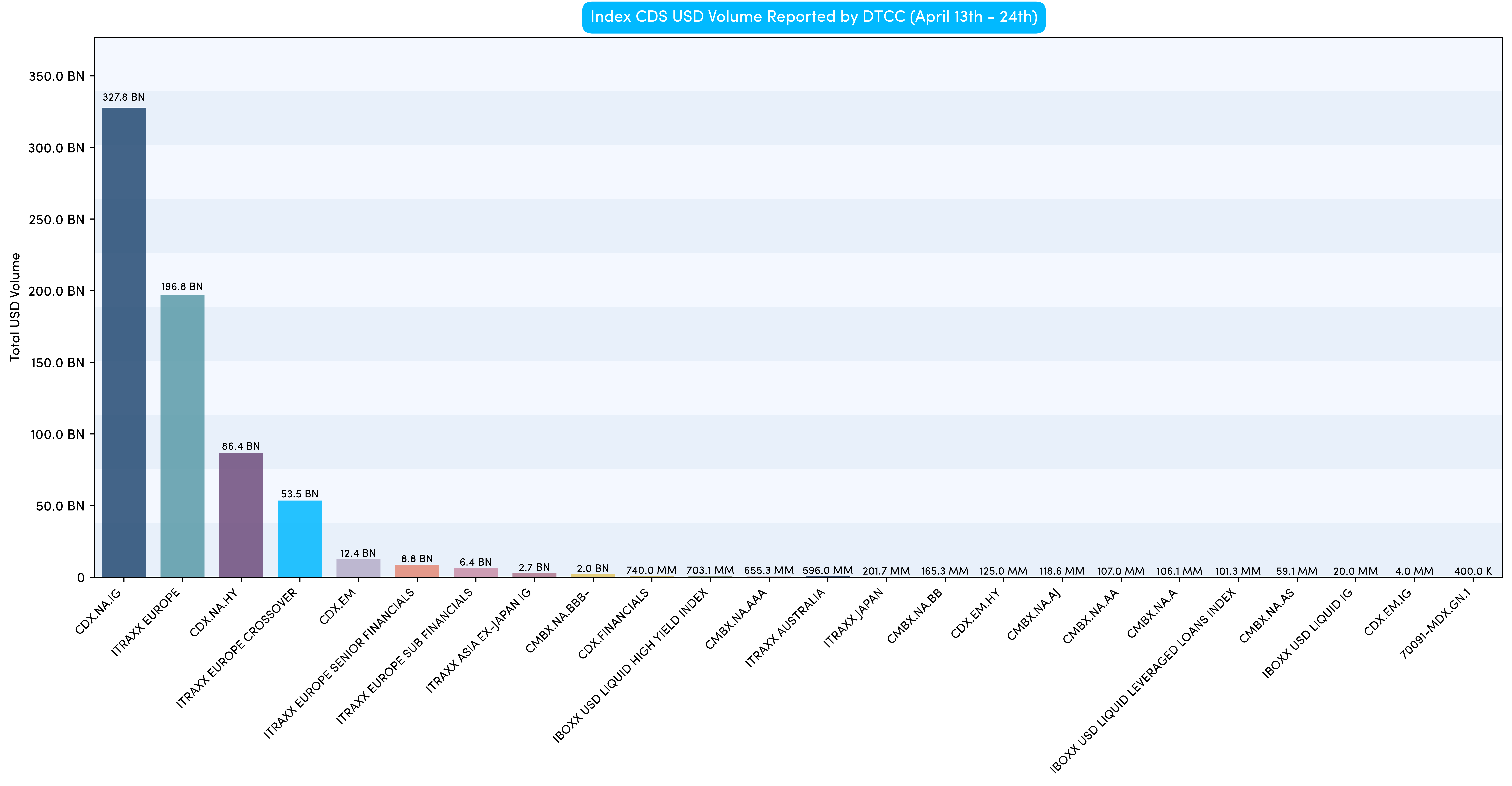 Switching focus to Index CDS, the chart again appears highly skewed, with the major liquid contracts taking the lion’s share of the volume.