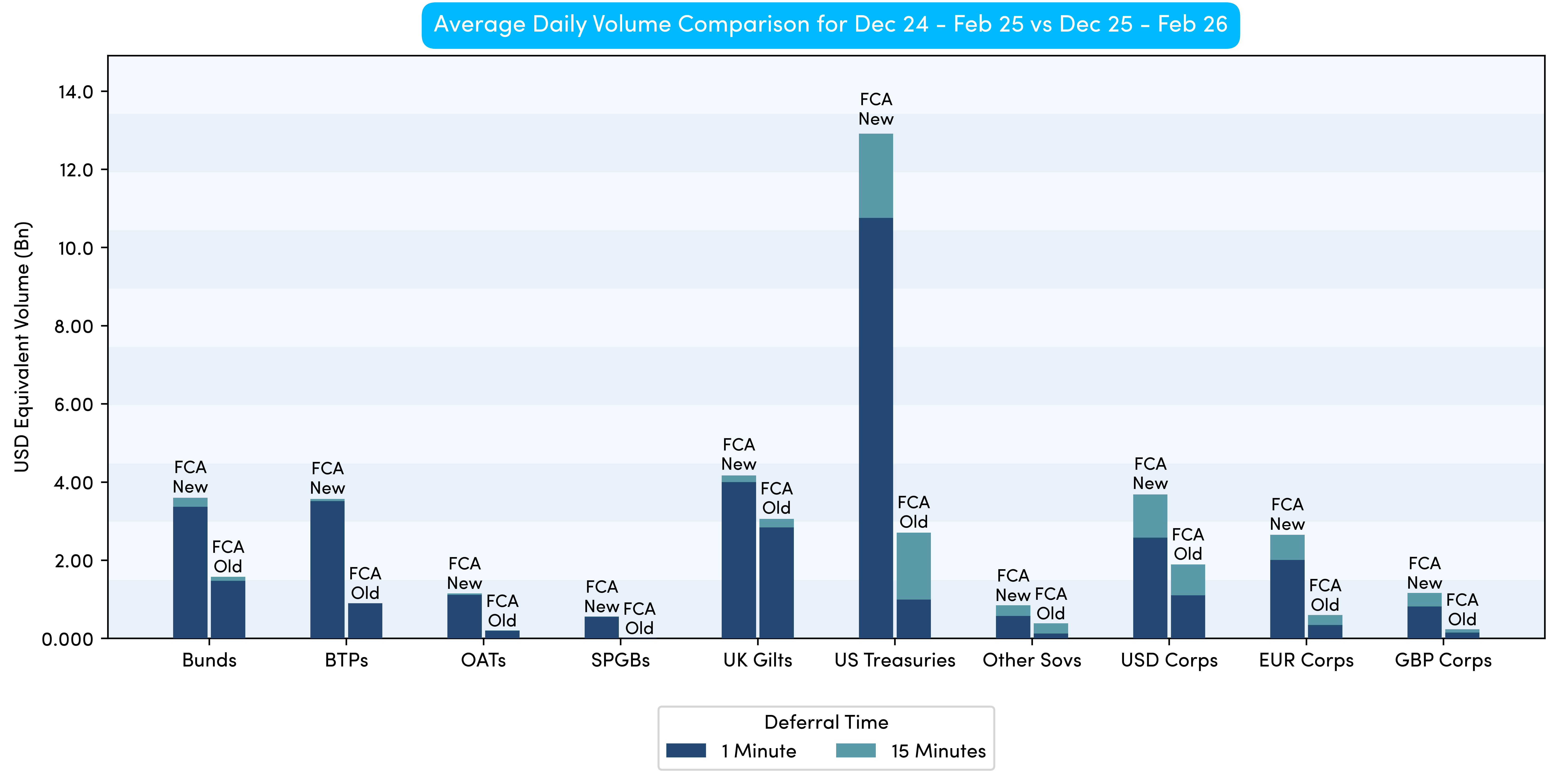 It is also important to note that, as previously mentioned, the introduction of end-of-day reporting T+1 under the FCA regime has led to an increasing number of reports coming through around 18:00 UTC. However, this is set to increase further once the new ESMA regime goes live, as the end-of-day reporting can occur on T+0, T+1 or T+2 (depending on the type of bond and transaction details).